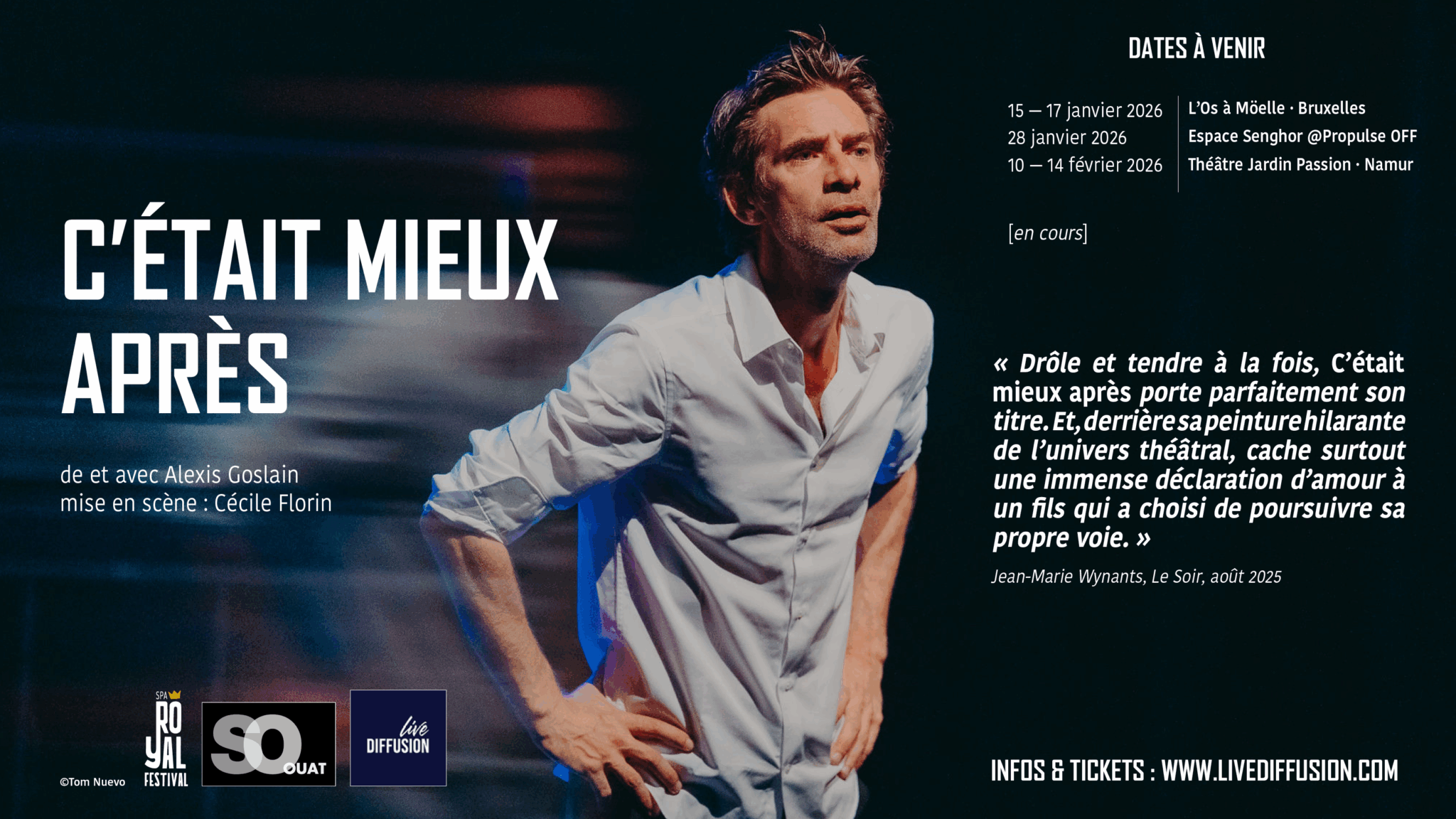 Dès fin septembre, vous pourrez voir ou revoir les 3 créations à succès du Royal Festival 2025 un peu partout en Fédération Wallonie-Bruxelles [tournées en construction]…